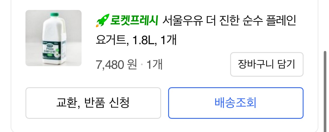 시판요거트를 샀는데, 쿠팡에서 1.8l 7,480원에 구입.