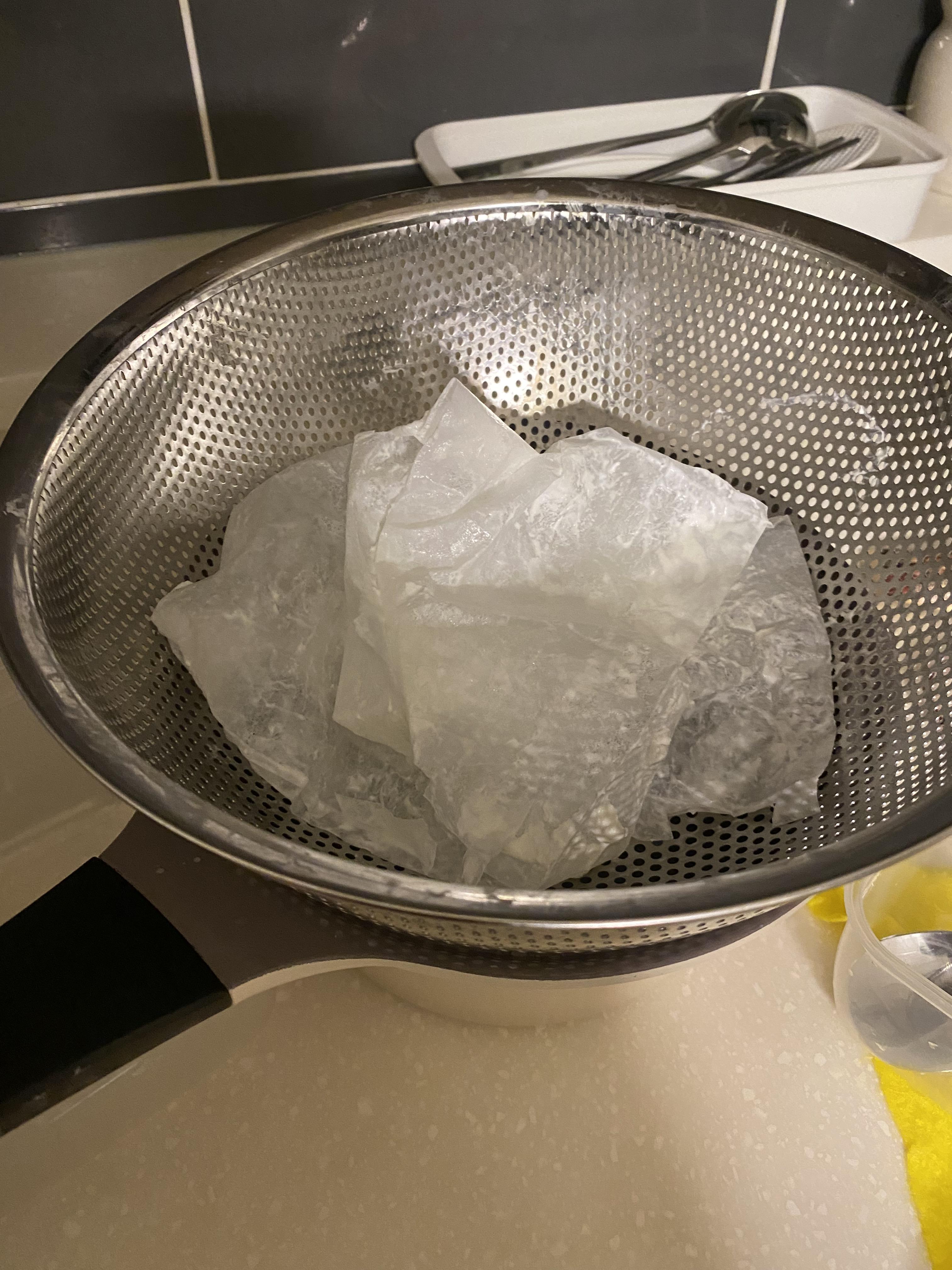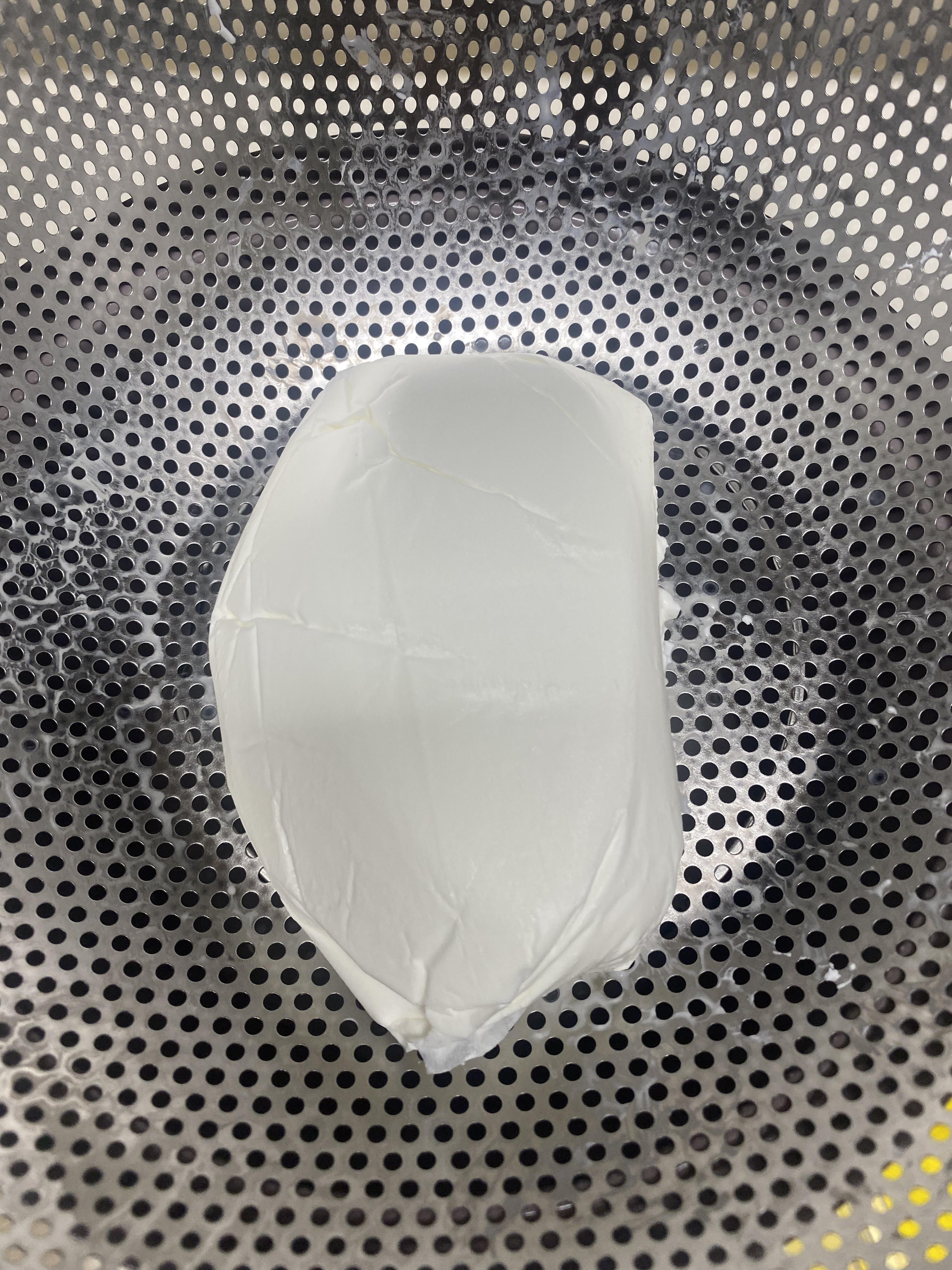 발효가 끝나면, 요거트를 체에 올려놓고 다이소 국물팩을 사용해 유청을 걸러냅니다.